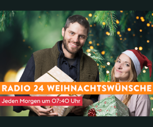 Jeden Morgen zahlt Radio 24 im Ufsteller einen Weihnachtswunsch! Schicke jetzt einfach deine Weihnachtswünsche über das Formular ein und höre ab dem 1. Dezember jedem Morgen um 07:40 Uhr Radio 24.